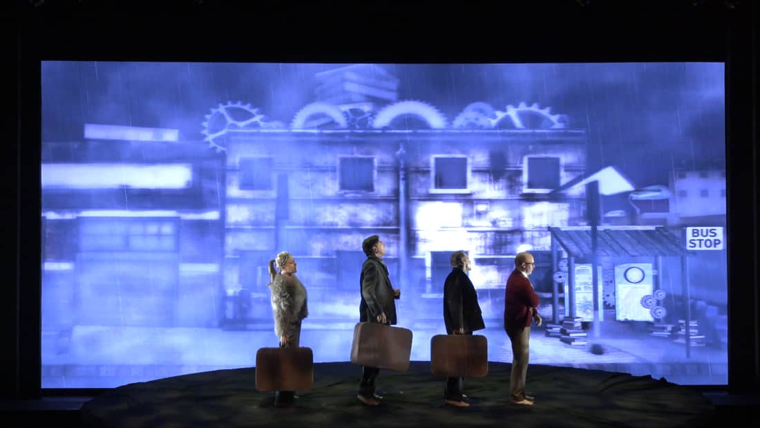Lewis brilliantly drawn characters take a fantastical bus trip from hell to the outskirts of paradise. Now with new added material four actors portraying 22 roles take you to the outskirts of heaven where the decision to stay or return to the familiar Grey Town below hell proves to be harder than imagined. Lewis wit and wisdom.