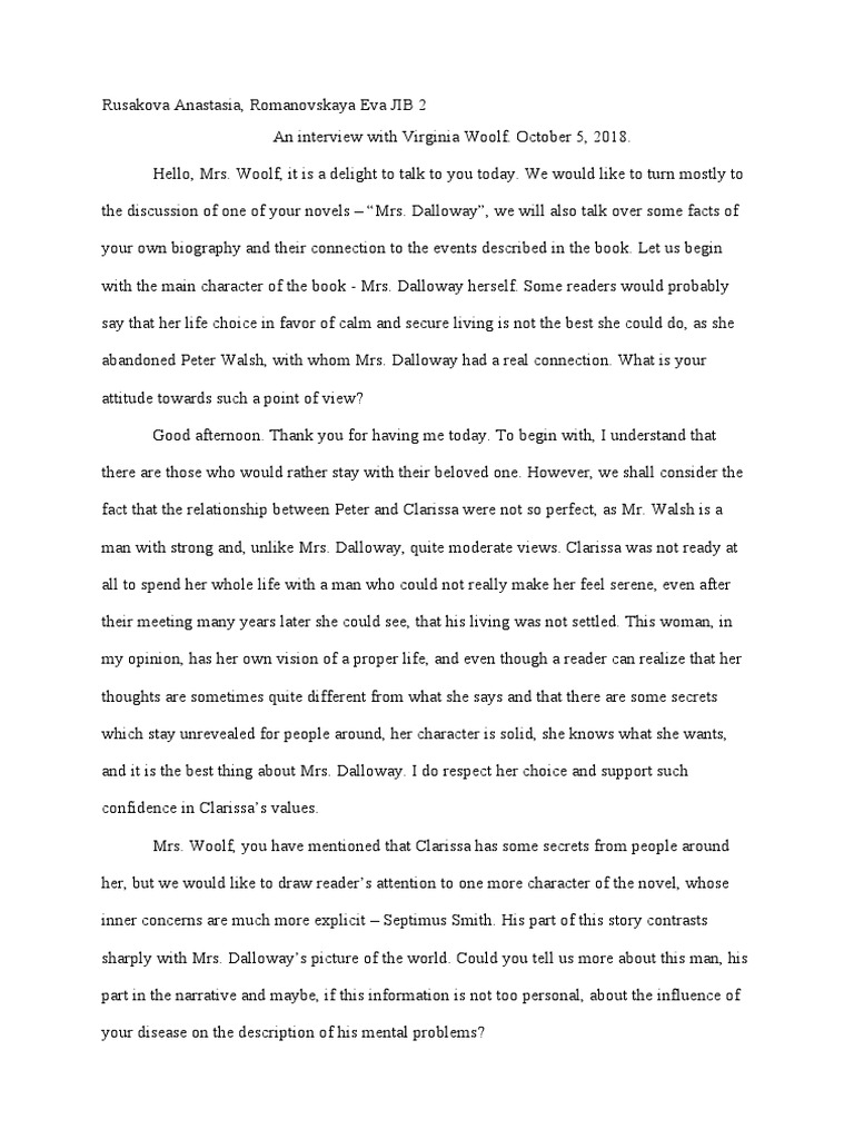 Doc Essay On Mrs Dalloway By Virginia Woolf Cristina Ozturk Academia Edu